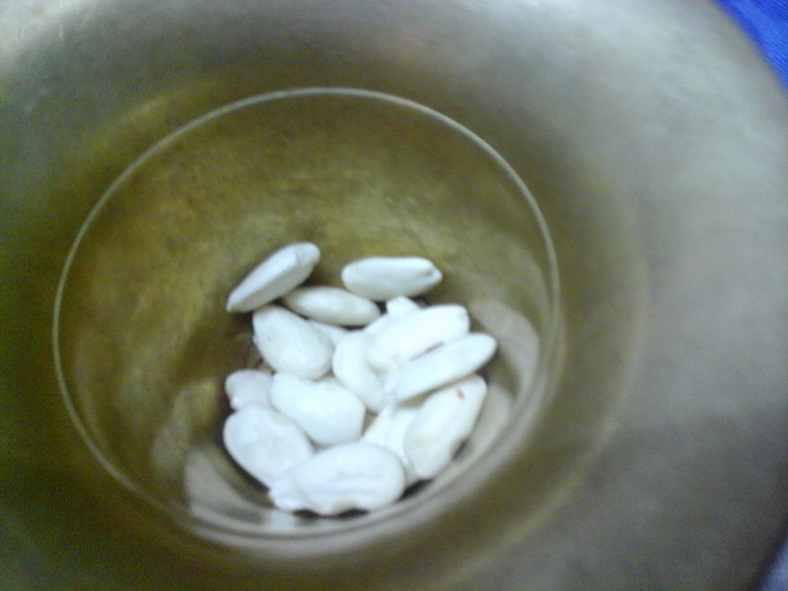 mientras tanto, ponemos las almendras a escaldar en agua caliente para quitarle
